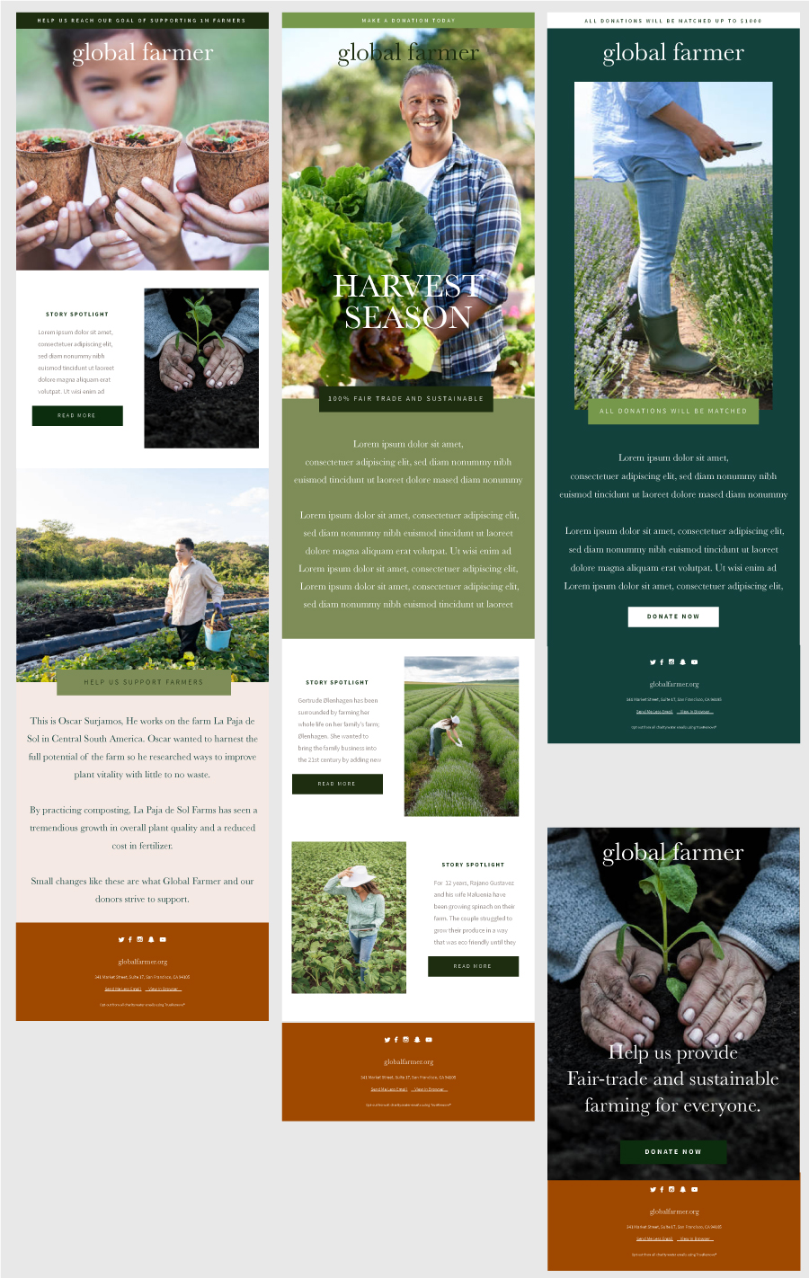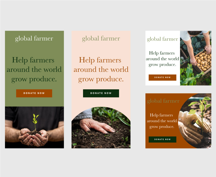 Global Farmer is a fictional non-profit organization that helps farmers around the world grow produce. These are some of the marketing materials needed to promote to potential online donors.